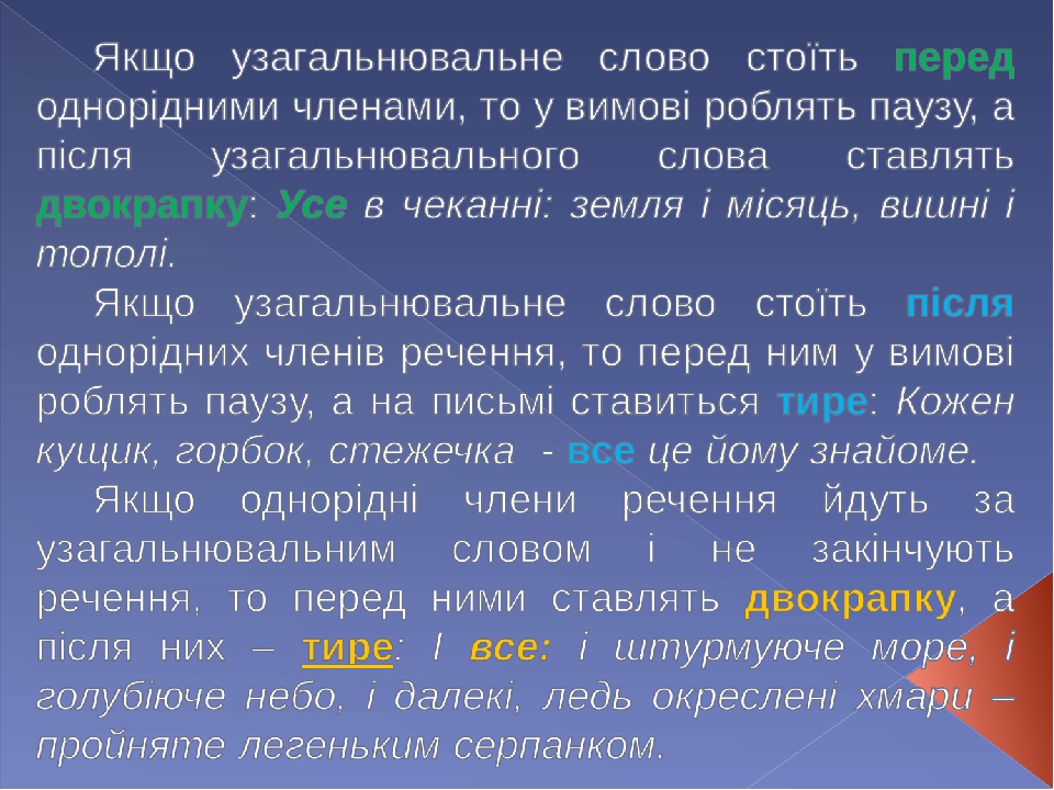 Узагальнювальне слово в реченні з однорідними членами . Двокрапка при узагальнювальних словах у реченнях з однорідними членами .